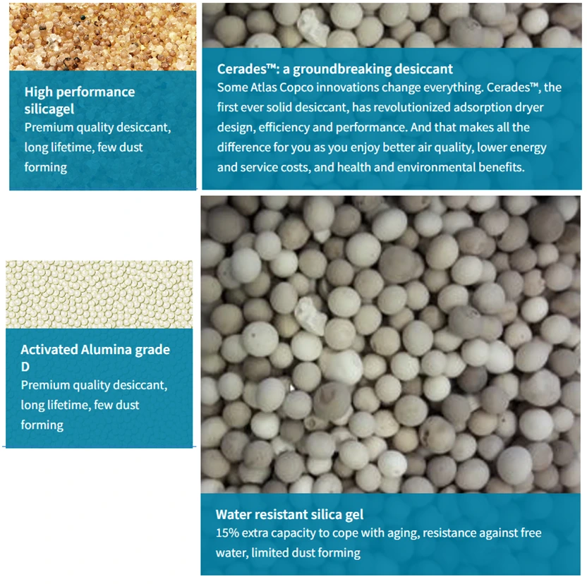 दबाव ओस बिंदु के आधार पर, डेसिकैंट्स को एल्यूमिना, सिलिका जेल या आणविक छलनी सामग्री से बनाया जा सकता है। न्यूनतम दबाव ओस बिंदु -70℃ तक पहुंच सकता है।