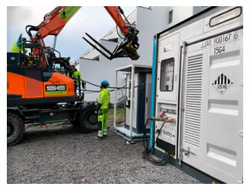 एटलस कोप्को फास्ट चार्जर एक इलेक्ट्रिक एक्सकेवेटर को खिलाने के लिए ZBC कंटेनर ऊर्जा भंडारण प्रणाली के साथ काम करता है