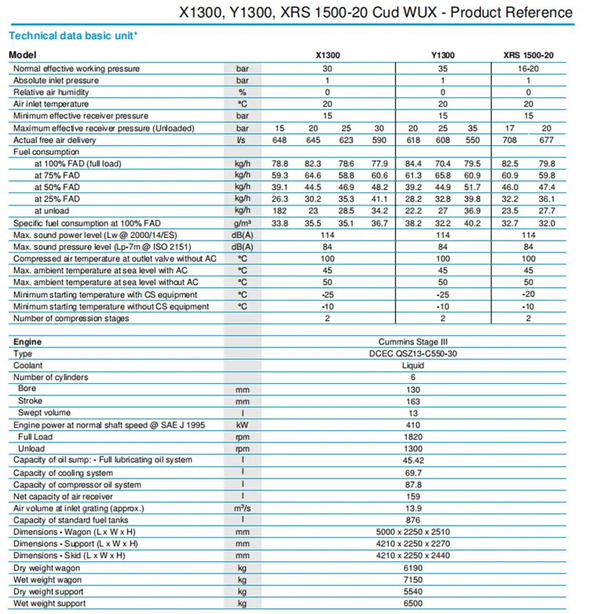 डीजल से चलने वाला मोबाइल एयर कंप्रेसर लिक्विड-कूल्ड, छह-सिलेंडर कमिंस QSZ13-C550-30 डीजल इंजन द्वारा संचालित होता है। इंजन की शक्ति हेवी-ड्यूटी कपलिंग के माध्यम से कंप्रेसर तत्व तक प्रेषित होती है।