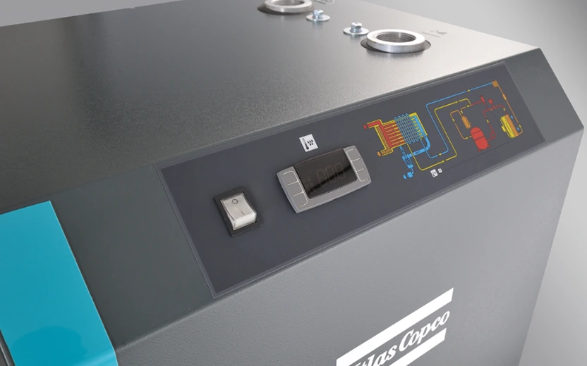 एटलस कोप्को एफ-टाइप रेफ्रिजरेटेड एयर ड्रायर एक थ्री-इन-वन हीट एक्सचेंजर का उपयोग करता है जो वायु/वायु, वायु/रेफ्रिजरेंट और जल विभाजक को जोड़ता है। यह ठंडा होने के बाद अलग हुए तरल पानी को प्रभावी ढंग से हटा देता है और संपीड़ित हवा को पहले से ठंडा कर देता है, जिससे ताप विनिमय दक्षता में सुधार होता है।