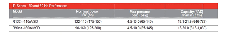 विश्व स्तरीय सिंगल और टू-स्टेज एयरएंड (90 किलोवाट से शुरू होने वाले दो-स्टेज उपलब्ध), टीईएफसी इंडक्शन या वैकल्पिक वैरिएबल स्पीड मोटर के साथ ऊर्जा के उपयोग को कम करते हैं।